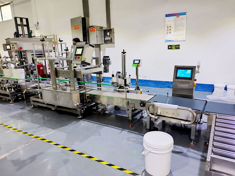 5.各個設(shè)備之間無縫銜接,自動壓蓋、自動貼標(biāo)、在線檢測重量,全流程自動化操作,無需人工干預(yù)。