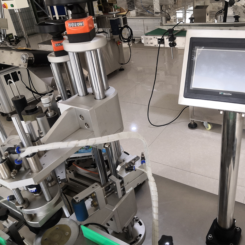 自動化圓瓶定位貼標(biāo)機(jī)建議的操作流程,僅需一人即可完成,沒有復(fù)雜的操控,無學(xué)歷門檻的限制,即便是女性也能快速上手操作。操作人員將待貼標(biāo)的圓瓶放置在進(jìn)料輸送帶上,輸送帶會自動將瓶子平穩(wěn)地送入分瓶機(jī)構(gòu)。它能夠精準(zhǔn)地將緊密排列的瓶子逐一分開,保證每個瓶子之間有合適的間距,避免在貼標(biāo)過程中出現(xiàn)瓶子相互碰撞。當(dāng)瓶子經(jīng)過多功能打印貼標(biāo)機(jī)的分瓶機(jī)構(gòu)時,紅外感應(yīng)會實(shí)時檢測到瓶子輸送的位置,一旦檢測到瓶子經(jīng)過,會快速想信號傳送給PLC控制系統(tǒng),此時的標(biāo)簽從標(biāo)卷上被剝離后,會在貼標(biāo)頭的作用下,準(zhǔn)確無誤地貼附在圓瓶的待貼標(biāo)位置上。